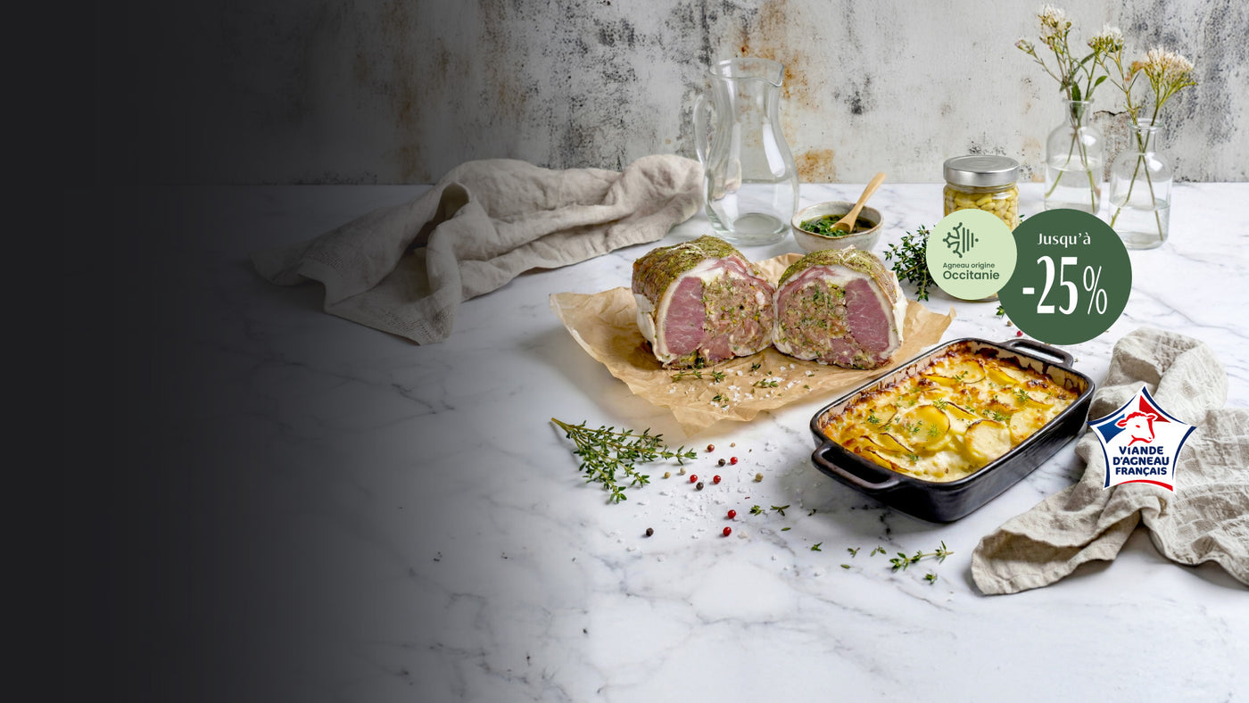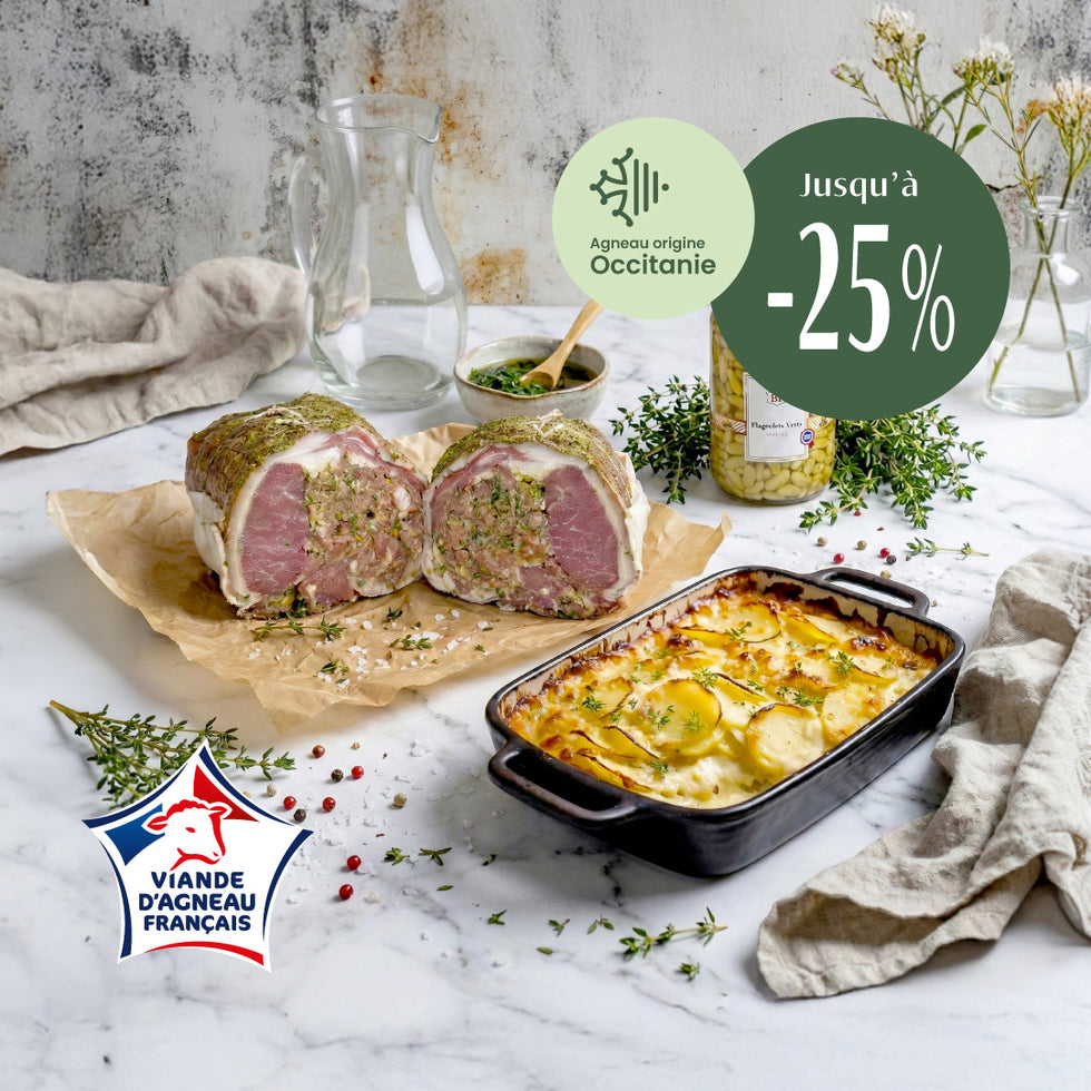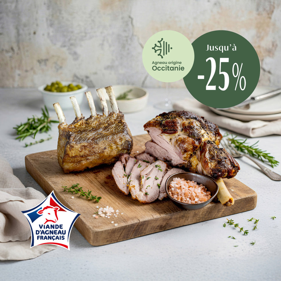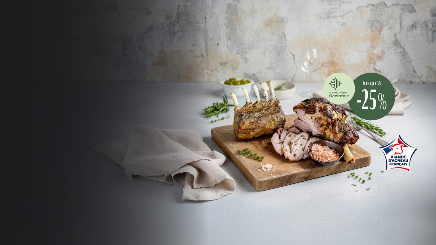 Trois agneaux d’exception (Occitanie, Lait des Pyrénées, Prés Salés du Mont-Saint-Michel), des nouveautés gourmandes, des menus prêts à déguster et des colis jusqu’à -25% pour une table de fête réussie.