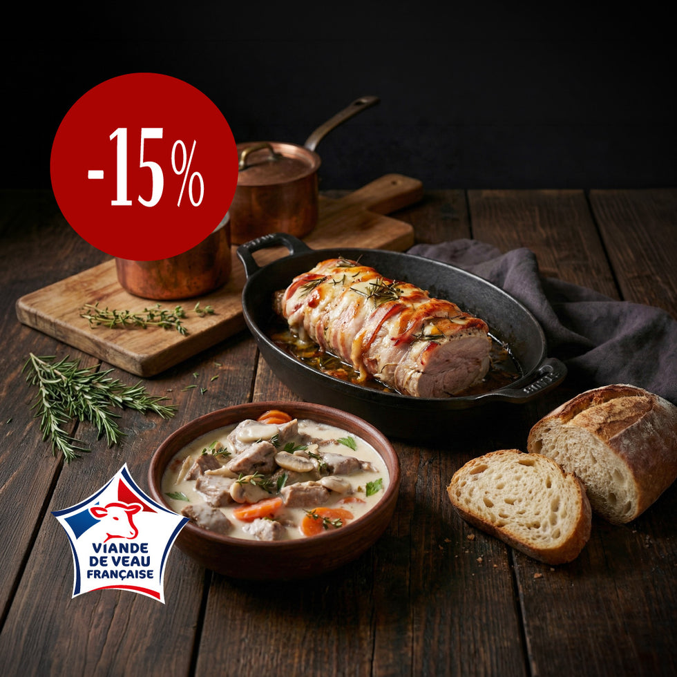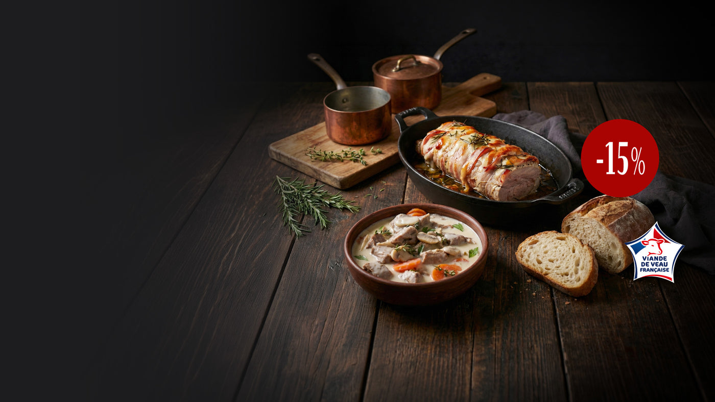 Cette semaine, profitez de -15% sur notre sauté de veau et sur nos différents rôti de veau : premier choix, italien, orloff.