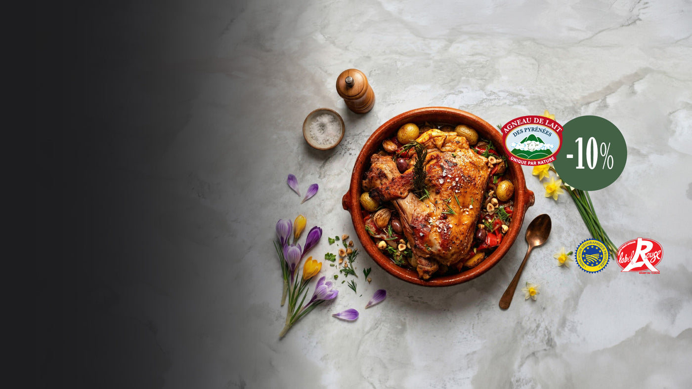 Profitez de -10% sur l'Agneau de Lait des Pyrénées pour sublimer votre repas de Pâques.