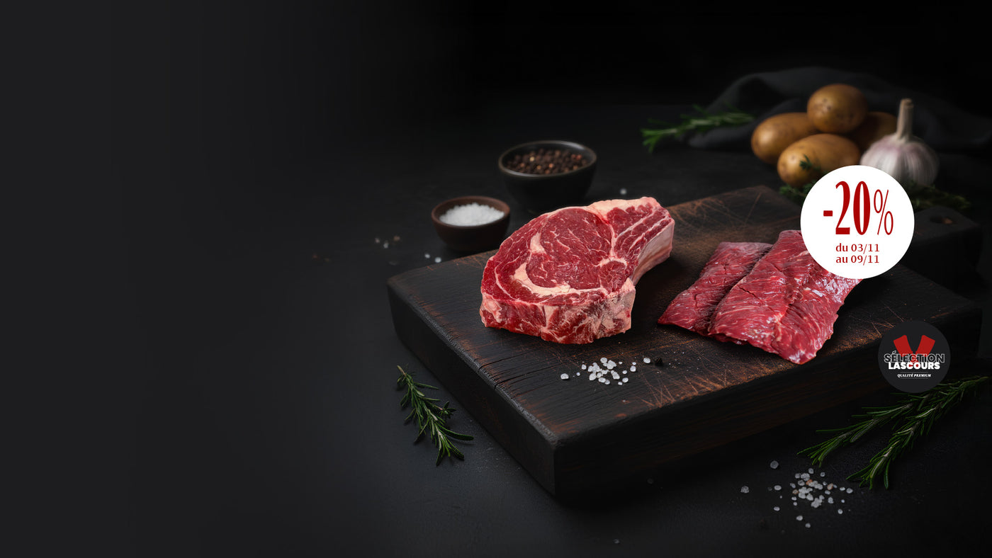 Maison Lascours est la première boucherie en ligne. Retrouvez tous les types de viandes : bœuf, veau, porc, agneau, volailles, gibier, ainsi que des produits de charcuteries, saucisseries, épiceries fines et fromages, accessoires et autres. Sans oublier une variété de races uniques ayant fait la renommée de notre maison : bœuf de Kobé, Galice, Wagyu, Simmental, Bœuf Limousin, Porc Noir de Bigorre, Volaille de Bresse, Canard des Landes et bien d’autres encore.