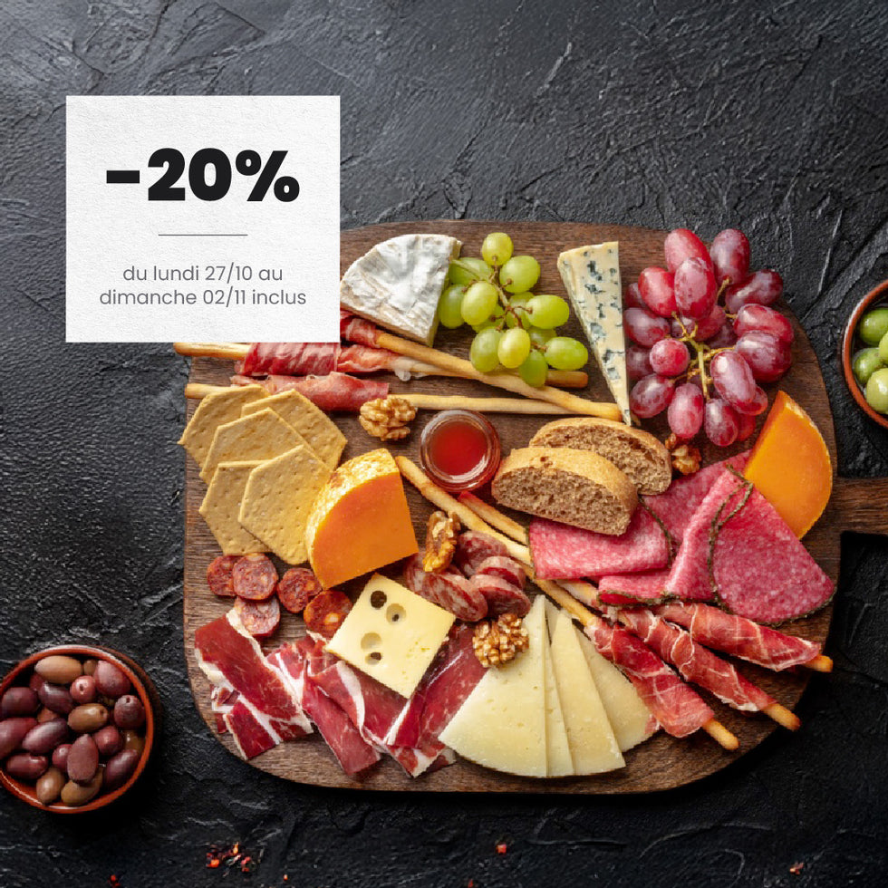 Et jusqu’au 2 novembre, profitez de –20 % sur notre sélection de plateaux apéritif.