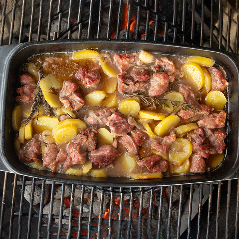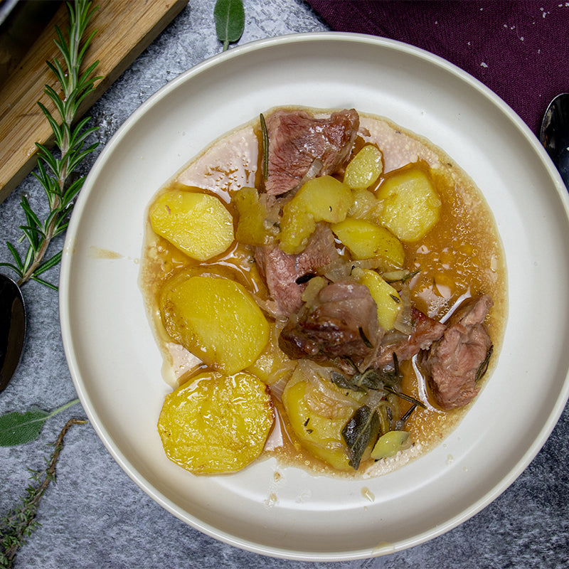 Un plat traditionnel, l'agneau boulangère met en avant la simplicité et ses saveurs uniques. La viande est cuite lentement avec des pommes de terre et des oignons, pour un mélange parfait d'arômes, pour un repas délicieux.
