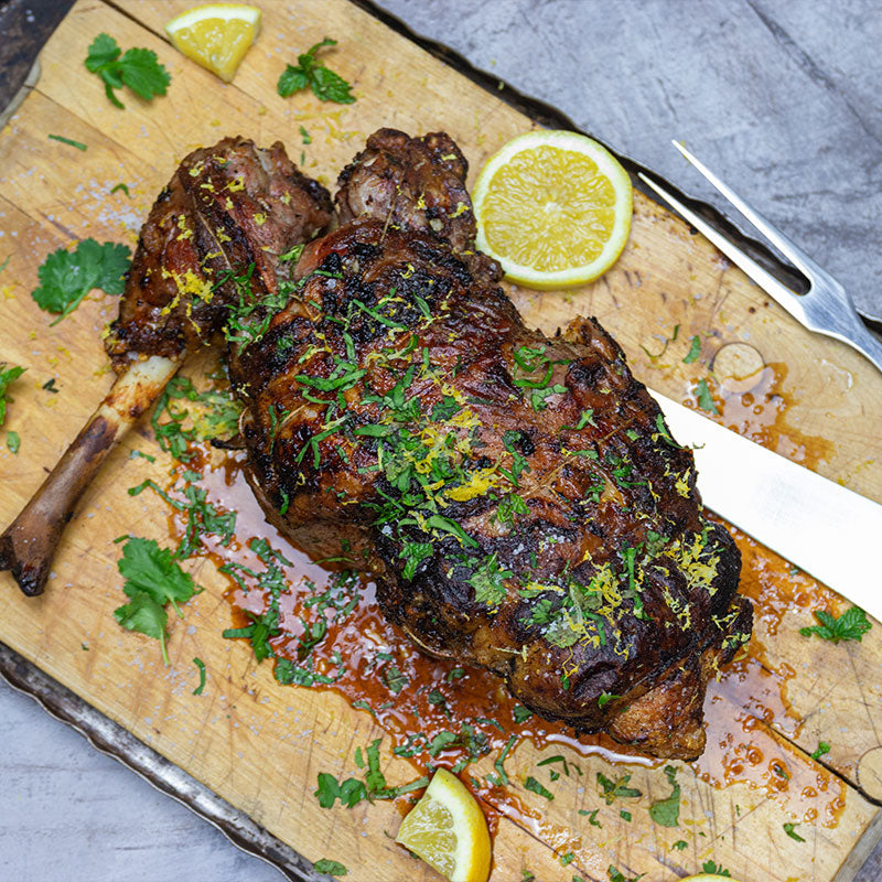 Profitez d'une viande juteuse et savoureuse, le gigot d'agneau est caramélisé et imprégnés de saveurs fumées, c'est le choix idéal .