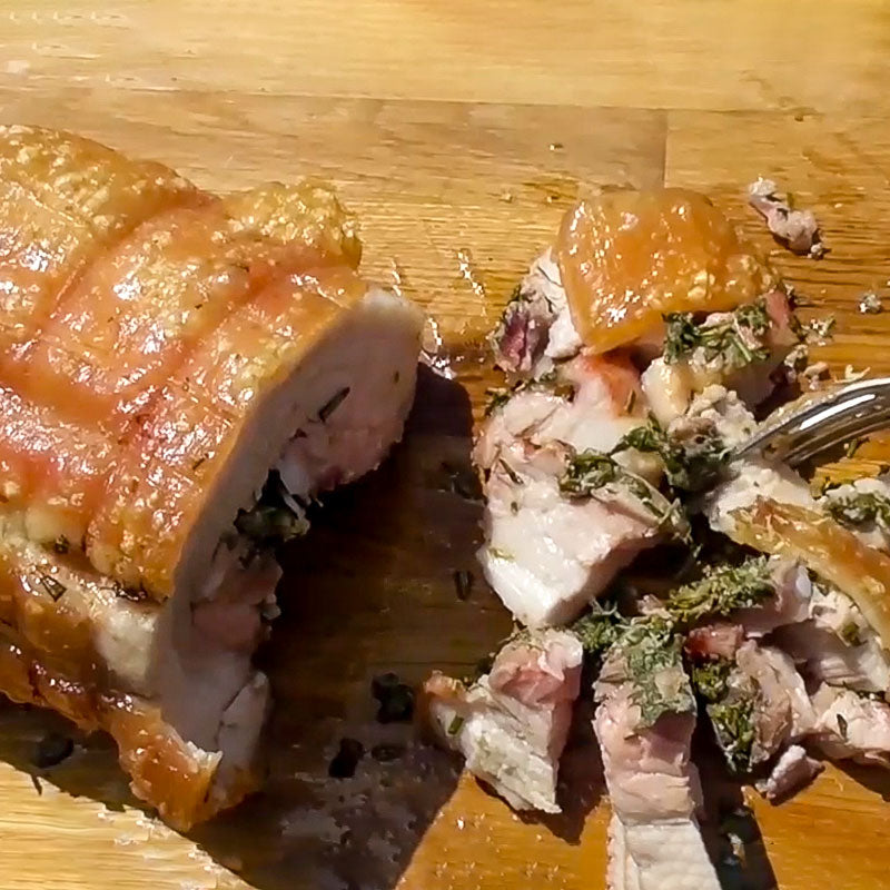Une recette savoureuse tout droit venue d'Italie, la porchetta est un véritable délice. Tout simplement une préparation à base de cochon farci, enroulé de fines herbes et cuit au barbecue pour des saveurs riches, une peau croustillante pour des repas exceptionnels.
