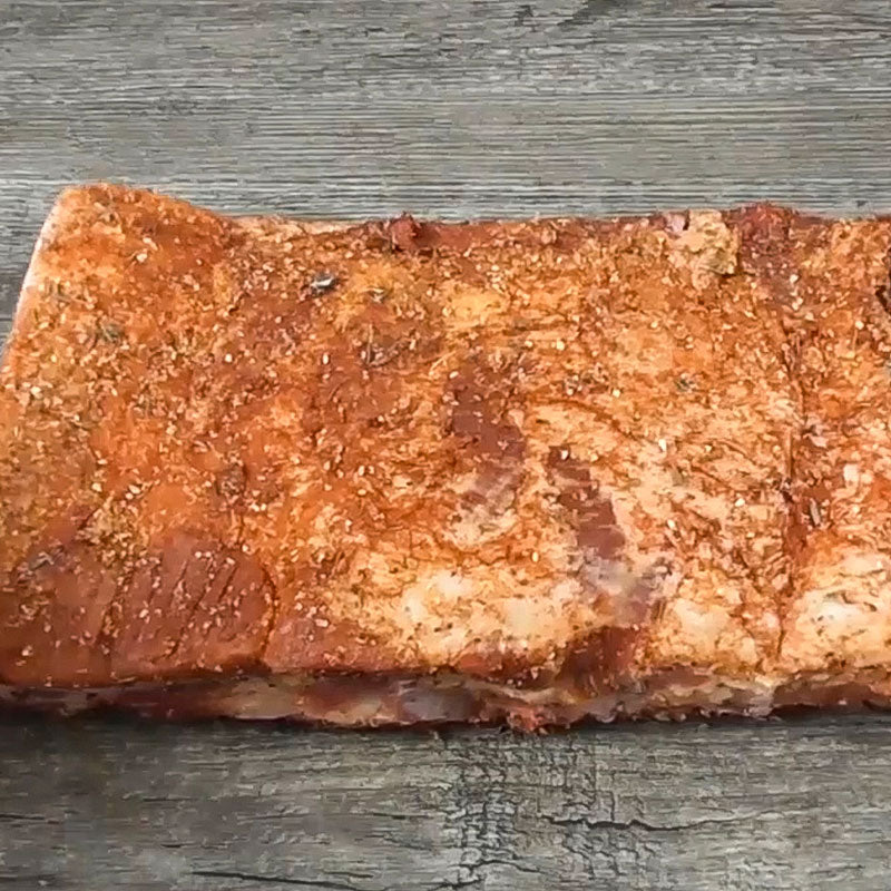 Délicatement mariné avec du thym, de l'ail, du piment, du paprika. Ce mélange vient apporter des saveurs légèrement épicées, le tout à faire griller au barbecue pour un travers de porc tendre et juteux, parfait à déguster avec du riz et une salade de mangue.