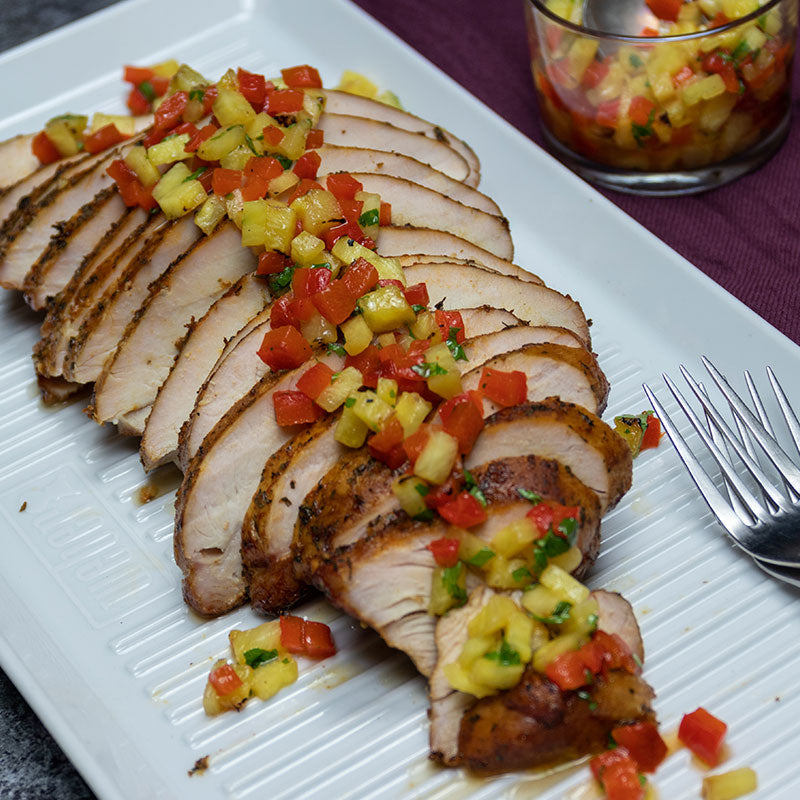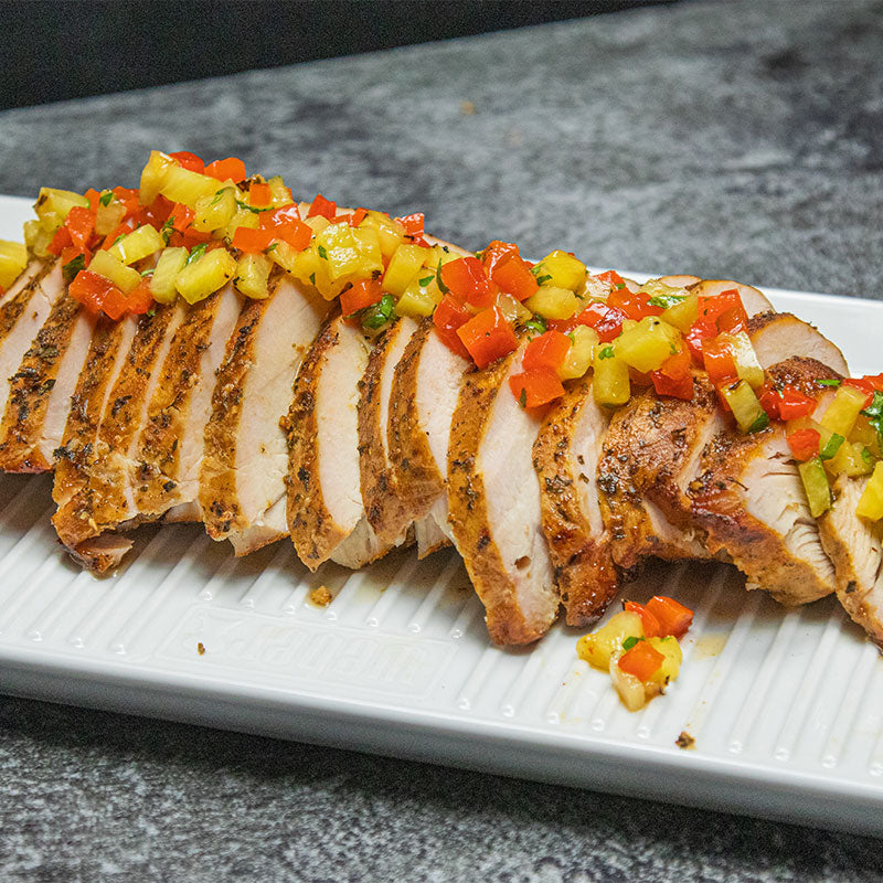 Une recette plein d'exotisme avec notre filet de dinde salsa tropicale. Une combinaison parfaite entre la tendreté du filet de dinde et la salsa fruitée, pour une explosion de saveurs, l'option idéale pour un repas léger.