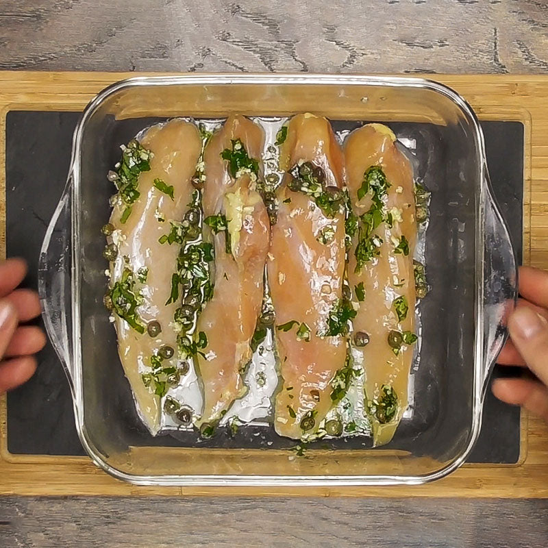 Une recette italienne revisitée où les filets de poulet sont tranchés finement et dorés, légèrement acidulé avec du citron et relevé par les câpres. Un plat simple et parfait pour un repas rapide.