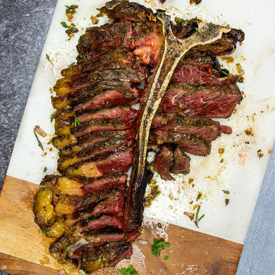 Quoi de mieux qu'un t-bone ? Un morceau juteux et tendre, délicieusement cuit au barbecue pour plus de saveurs. Parfait pour tous les amateurs de bonne viande !