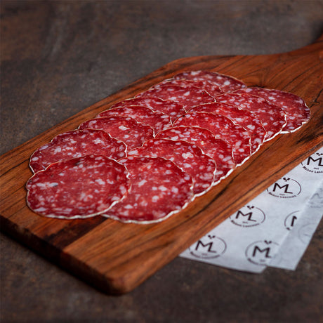 Chez Maison Lascours, la charcuterie sèche occupe une place de choix, à mi-chemin entre patrimoine culinaire et petit plaisir du quotidien. Nos pièces sont issues de viandes rigoureusement sélectionnées, affinées lentement pour développer des arômes intenses et une texture parfaite, ferme à la découpe et fondante en bouche.