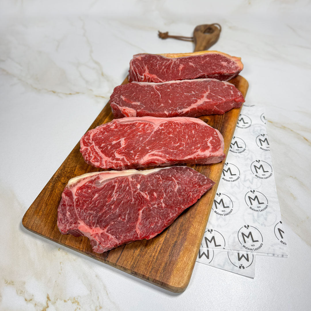 Le Coffret Dégustation – Classique a été imaginé pour les amateurs de viandes maturées qui souhaitent explorer les subtilités gustatives des plus grandes races de bœuf, à travers une même découpe emblématique : le faux-filet. Chaque pièce est maturée dans nos caves selon des durées optimales, permettant de concentrer les saveurs et d’adoucir la texture.