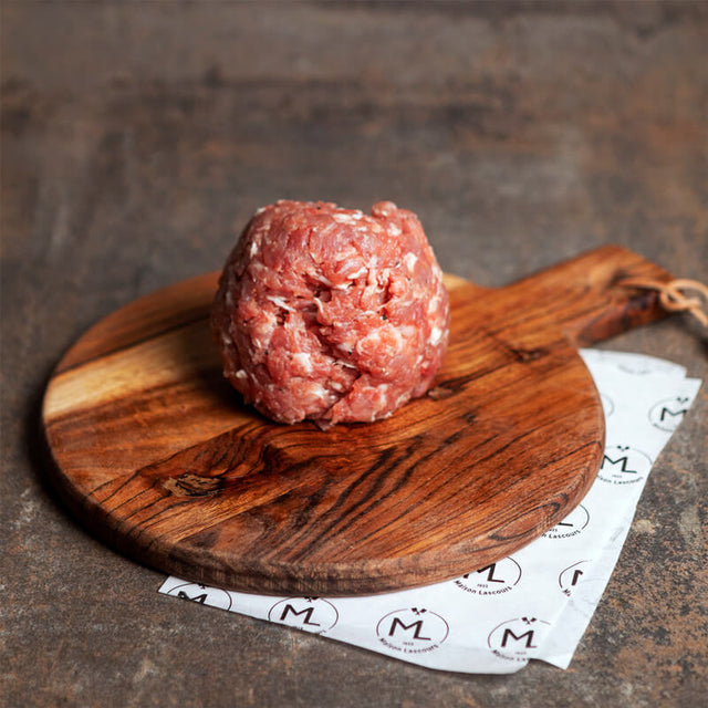 Une farce nature élaborée à partir de viande de porc d'Occitanie, soigneusement sélectionnée et assaisonnée de sel et de poivre.