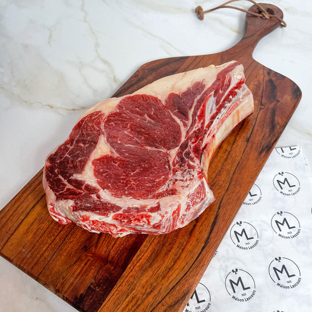 La côte de bœuf Aubrac est taillée pour celles et ceux qui recherchent une viande de terroir, structurée et pleine de caractère. Issue d’une race rustique du Massif central, élevée à l’herbe et en plein air, elle se distingue par une chair rouge foncé, une mâche puissante et des arômes de viande mûre.