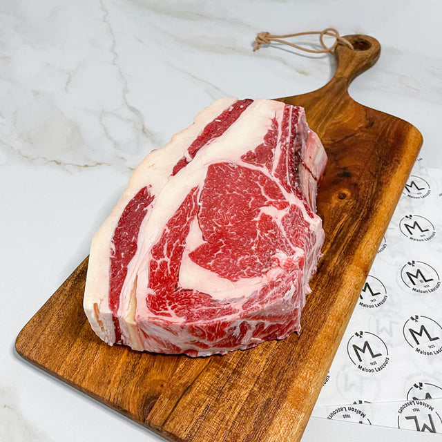 La côte de bœuf Black Pearl est un morceau rare, porté par une race encore jeune mais déjà incontournable. Élevée dans la région des Mille Lacs en Pologne, cette viande se distingue par sa chair délicate, à la couleur légèrement violacée, et son gras fondant, qui vient enrober un persillage finement réparti.